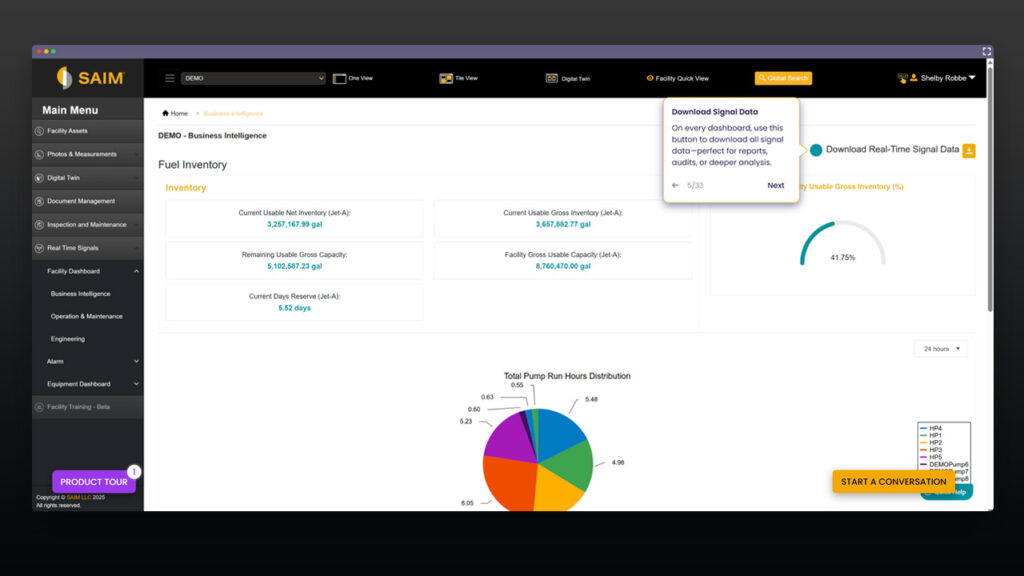 This demo shows how SAIM captures your facility as it actually exists, connecting assets, measurements, and records inside a live digital twin.